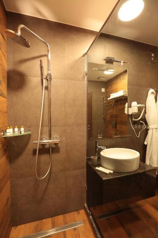 Эксклюзивный дизай, двухуровневое зонирование создают неповторимое сочетание стиля и комфорта. В вашем распоряжении роскошная ванная комната с душевой кабиной, и все необходимое для комфортного пребывания в нашем отеле.